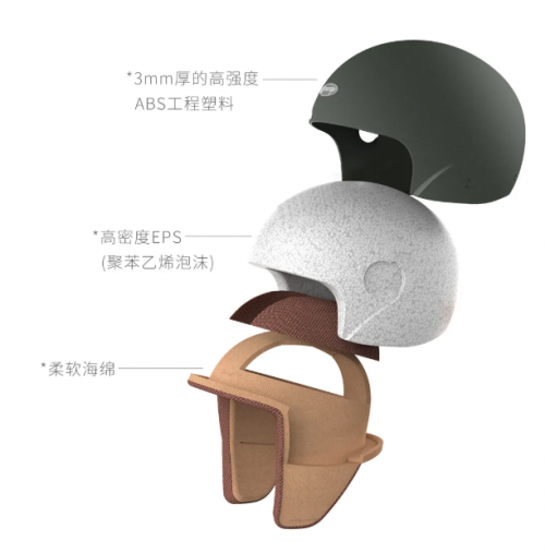 说到安全性,不得不再表扬下它的独有的三层结构。外壳采用3mm厚的高强度ABS工程塑料,提供优异的抗冲击性和耐穿透性能;减震层采用高密度EPS(聚苯乙烯泡沫),受到撞击时可有效吸能;内侧采用柔软海绵,让头部与头盔无缝结合。