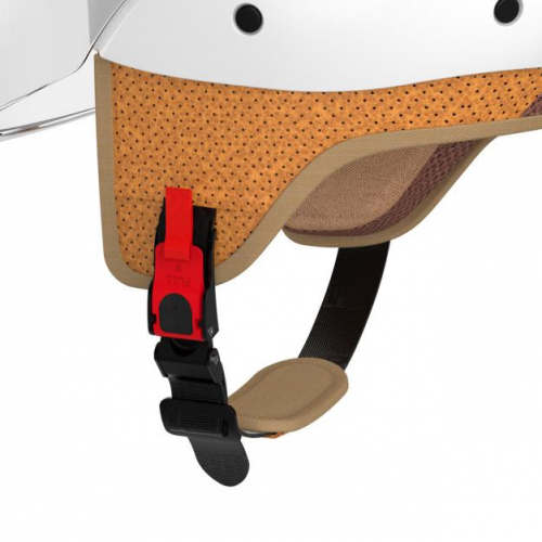 电影情节中,最经典莫过于骑手到达站点后,单手解开头盔后尽情挥洒汗水的那一刻。MH20采用了可单手开启的双卡齿锁定卡扣,卡扣的关键部位采用确保安全与耐久的金属冷轧板,可承受最大90公斤拉力。