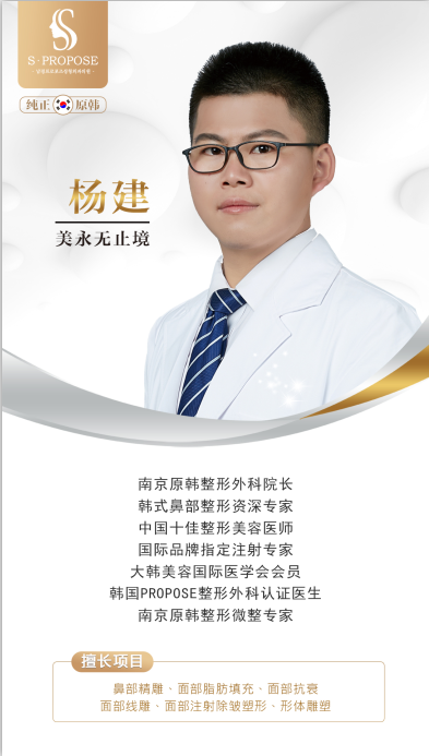 杨建院长就职于南京普罗普姿原韩整形,专攻脂肪类项目,也非常擅长隆鼻项目,整形风格整体偏自然。脂肪填充可以在安全范围内抽出足够多的脂肪达到最佳的吸脂效果,很多顾客来做院点名要杨健院长吸脂。