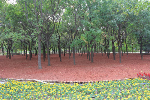 早在2009年,杨庆丽和她的团队就开始了园林废弃物资源化利用的研究,而这一切来源于一场美丽的“景观邂逅”。出差在美国学习的杨庆丽偶然间看见了绿化工人正在就地处理园林废弃物,并且将加工处理完的园林废弃物铺设在裸露土地上,咖啡色的覆盖物让裸土立刻呈现出别致的景观效果。这让杨庆丽眼前一亮,引起了极大的兴趣。经过了解得知,原来这种材料美国人称之为MULCH,是将园林废弃物经破碎,加工制作而成的一种地表覆盖材料,具有改良土壤、压制扬尘、美化环境等多种环保功效。