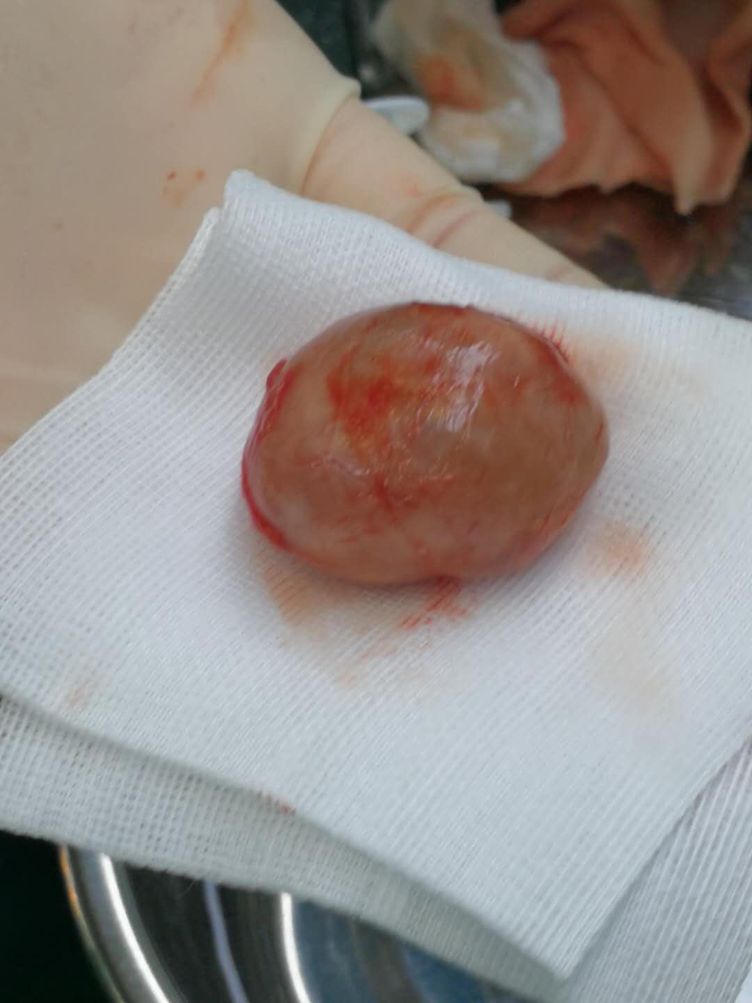 该手术由我院甲状腺科专家叶真教授主刀。(患者:男性,46岁,两年前发现左侧耳垂周围肿块)