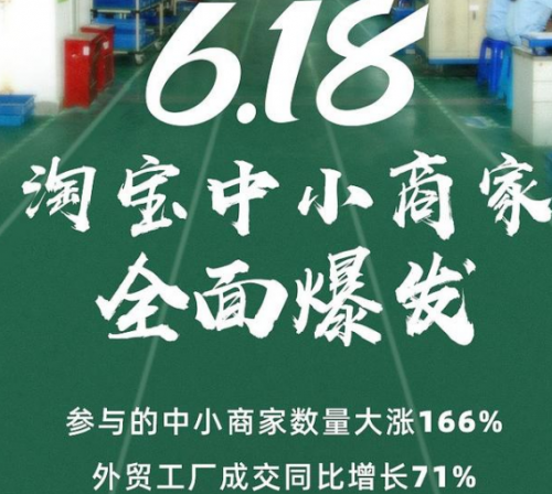 6月12日数据显示,今年参与618的淘宝中小商家数量同比大涨166%。尤其是面临困难的外贸工厂,在淘宝上成交大涨71%。“上淘宝,转内销”成了全国厂长的心声,当前全国一半外贸工厂都已经开了淘宝店。今年618,淘宝专门成立了中小商家的流量支持项目部。这是疫情以来淘宝一系列商家帮扶措施的延续。