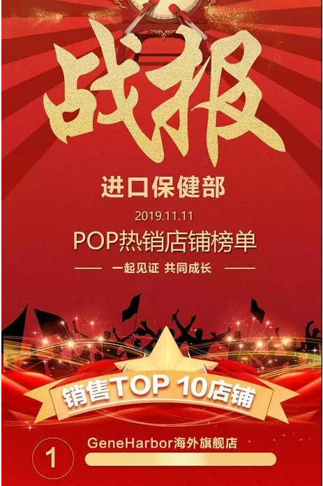2019年双十一“GeneHarbor”全天成交额同比增长50000%,一举成为京东进口保健品乃至所有在售保健品中店铺成交额最高品牌。