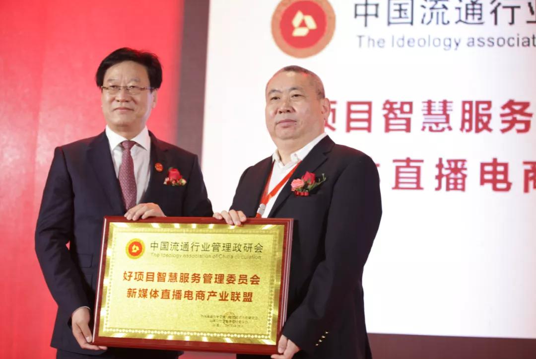 ▲中国流通行业管理政研会会长王子龙宣读《关于成立新媒体直播电商产业联盟的通知》