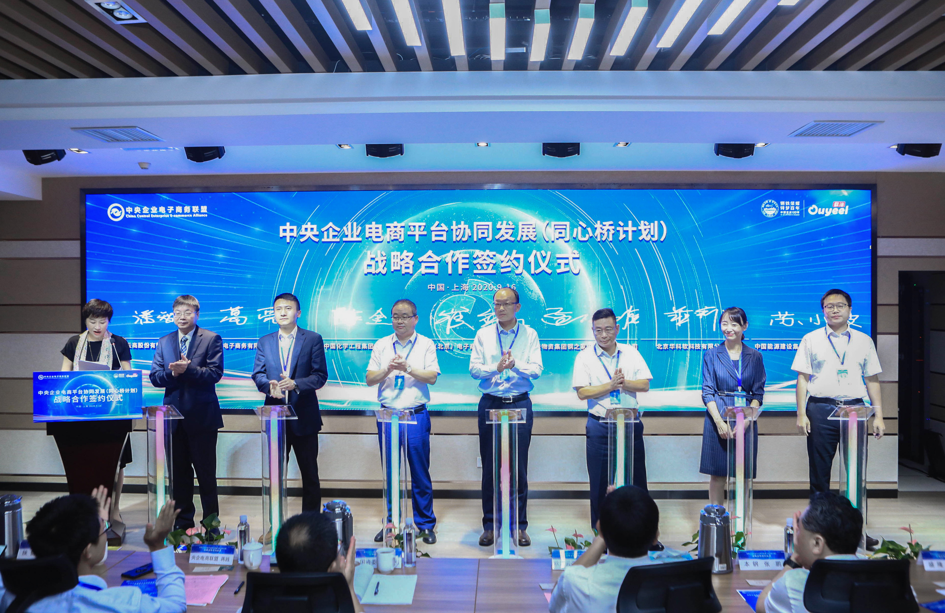 9月16日上午,在国务院国资委科技创新和社会责任局、中央企业电子商务联盟指导下,中央企业电商平台协同发展战略合作签约仪式在上海举行。欧冶云商、中建电商、中国化学工程、中铁鲁班、中国大宗物资网、华科软、能建电商七家国内知名的央企电商平台、软件服务企业和相关建筑央企集团共同发起此次“同心桥计划”战略合作签约活动。