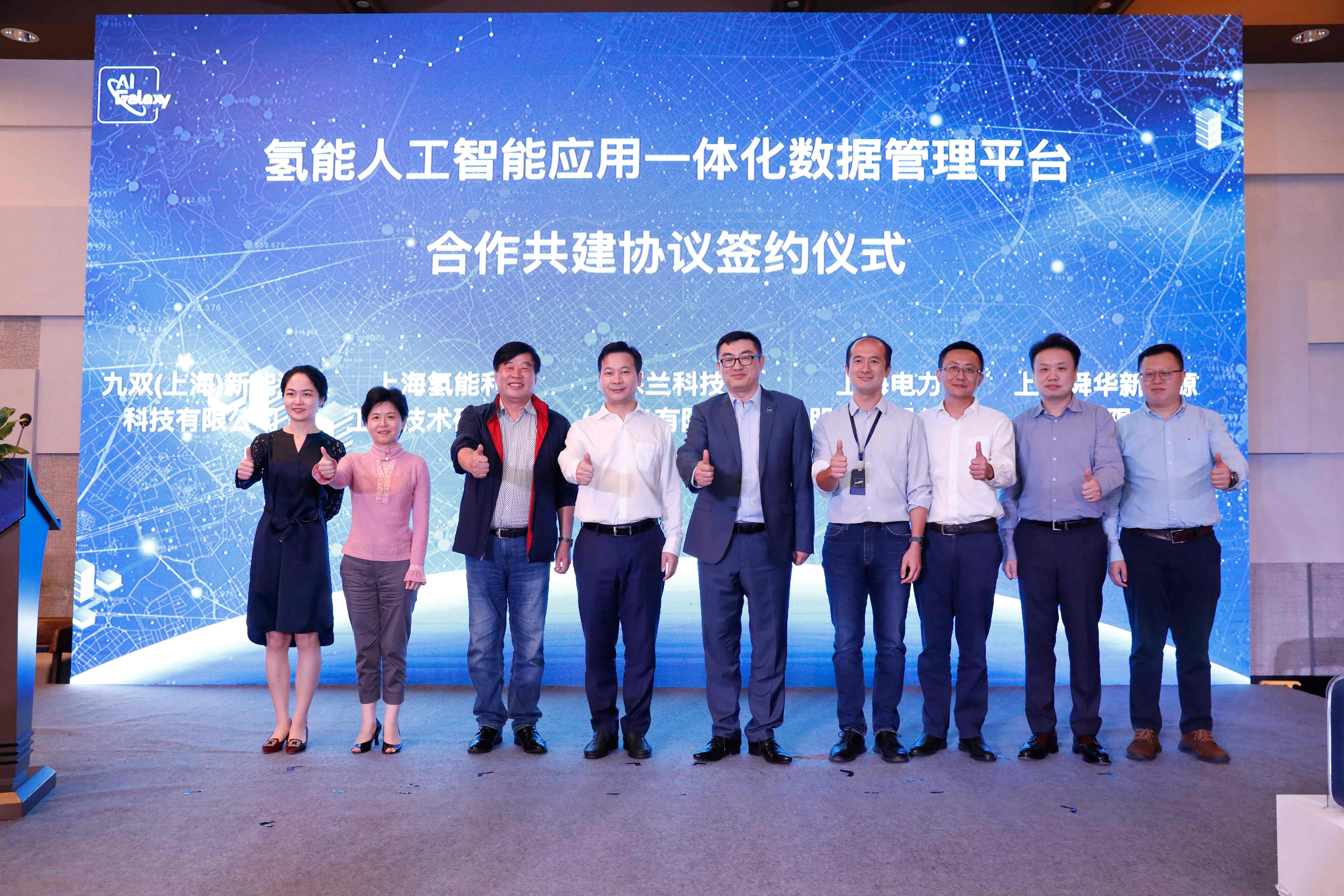“氢能人工智能应用一体化数据管理平台合作共建协议”由深兰科技、上海电力股份有限公司、上海氢能利用工程技术研究中心、上海舜华新能源系统有限公司及九双(上海)新能源科技有限公司共同签署。