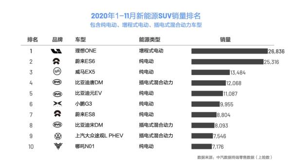 过去连续3个月里,理想汽车一直是“中国新能源SUV销量第一”,这个成绩值得肯定。排名根据中汽数据终端零售数据而来,其反映的就是真实的上险数,并且理想汽车E竞争力强势,无论纯电还是混动,级别还是价格,其余新能源SUV都被理想汽车甩在身后。而且在今年9月底时,理想ONE累计交付量就突破2万台,完成第二个1万台的目标,用时仅为第一个万台的一半。