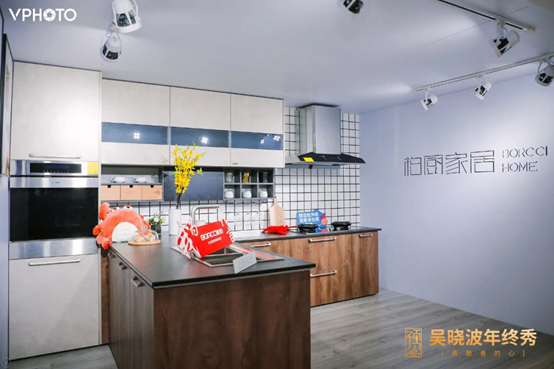 当天会场,柏厨家居“时光印橡”厨房惊艳亮相。“水秀山清眉远长,归来闲倚小阁窗”,看那人间烟火邂逅时光。时光印橡厨房给人的第一印象就是自然而大气,其最具特色的就是树木“年轮”般的自然感。选用年轮纹理的橡木,真实触感的珠光岩,凹凸肌理的荔枝面台面,和谐的色调,漂亮的纹理,让神经得到放松、思考、休息,从而追求时光里的轻松与从容。