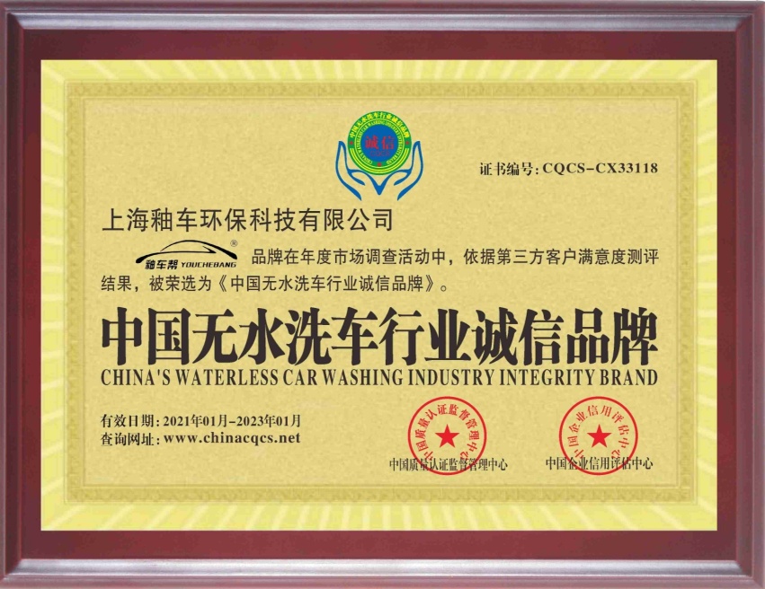 这次集中推介了一批品牌建设、创新发展等方面取得一定成绩的品牌企业,创新企业,经过行业权威信息比对,组委会考核评定,上海釉车环保科技有限公司旗下釉车帮品牌荣获“中国无水洗车行业诚信品牌”奖项,此次获评,意味着釉车帮在打造无水洗车行业品牌,坚持创新突破,推动行业发展取得的成绩得到了肯定和支持,进一步彰显釉车帮在行业中的核心竞争力。