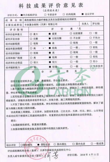 所谓重点新产品,是指科技型企业自主开发,应用新技术原理、新工艺、新材质、新设计,对原有产品进行实质性改进,显著提高了产品性能或在国内外率先提出技术标准并在国内首次(或首批)开发成功,并在近三年开始上市销售的产品。而卡本预应力碳板加固系统,能够被评为“天津市重点新产品”离不开卡本人的共同努力。