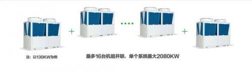 科林贝思模块化风冷式冷(热)水机组含65KW,100KW,130KW三个基本模块,兼容性强,全系列模块机任意组合,最多可16台并联,最大冷量高达2080KW,极大的设计自由度,轻松满足不同负荷需求。