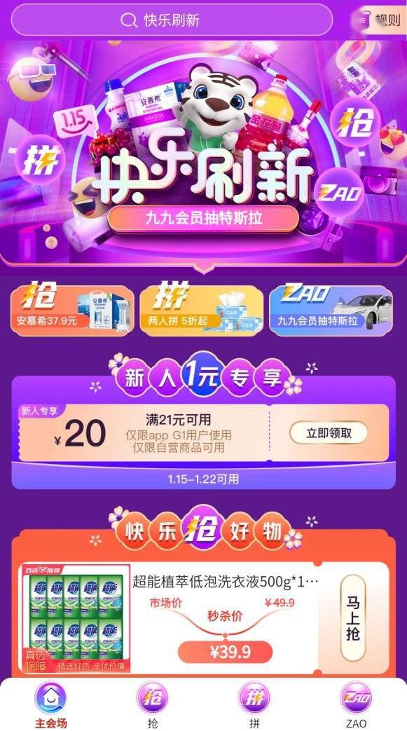 活动中,为增加消费者快乐购物体验,“真快乐”APP重磅推出“抢-拼-ZAO”玩法。其中,除了ZAO动团活动升级,九九会员免费抽特斯拉Model 3使用权外,“真快乐”APP还为消费者带来了爆款秒杀、抢购、低价商品等福利。
