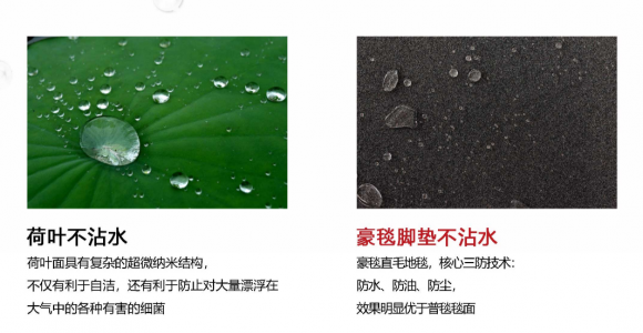 豪毯直毛地毯脚垫,采用先进的“荷叶仿生”技术,水分不易流进毯面,防水、防油、防尘。普通的污渍用抹布一擦即干净,长期使用的脚垫一冲一甩就能用,比普通簇绒类好打理且容易干。