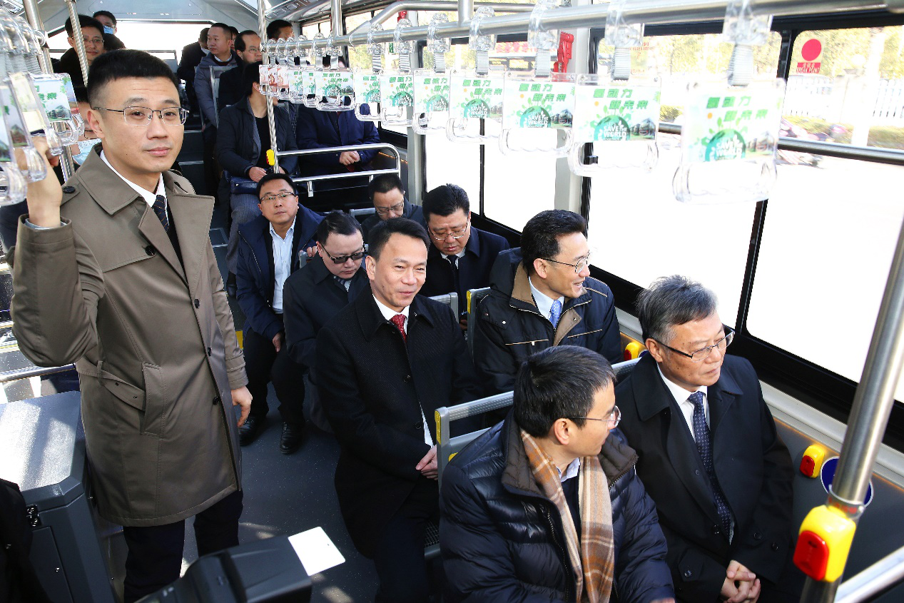 活动现场,常熟市委书记周勤第,市委常委、高新区党工委书记王建国,副市长史纲,高新区管委会副主任顾志强、蒋向阳,市交通运输局局长钱敏磊,上汽集团副总裁、总工程师、捷氢科技董事长祖似杰,捷氢科技总经理卢兵兵,苏州金龙党委书记、董事长陈笃廉,以及常熟市发改委、工信局、财政局和高新区相关部门领导出席交车仪式、参与剪彩,并一起试乘氢燃料公交。