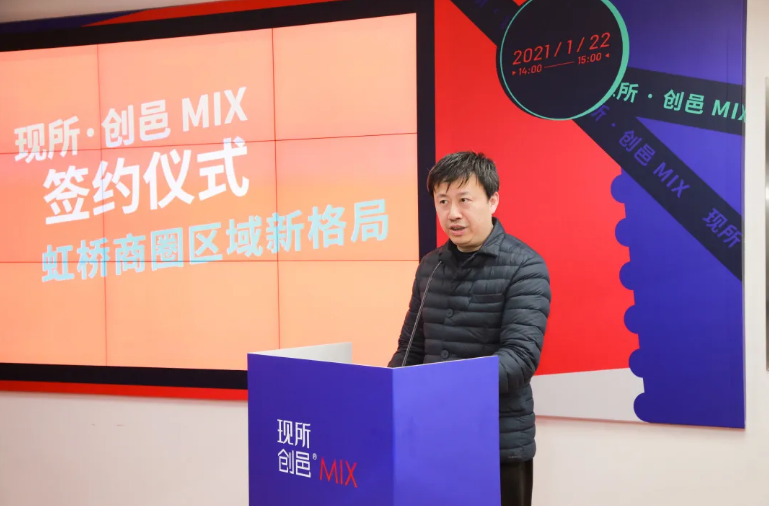 在长宁区政府整体打造虹桥商圈的战略指导下,1月22日,新长宁集团携手CREATER创邑&憬泰百货的合资企业岦地文化举办签约仪式,利用虹桥天都原有物业,倾力打造区域内首个商业办公复合型潮流地标——现所·创邑MIX,项目覆盖地下一层至地上五层近3.5万平方米,针对虹桥商圈“二元结构”现状,辐射该项目为中心的城市商圈,引领片区成为具有国际前瞻性的潮流新样本。