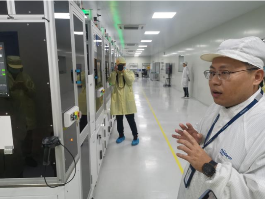 福瑞泰克智能制造工厂。澎湃新闻记者 张唯 图厂长董海峰介绍,工厂内的角雷达生产线从今年6月投入生产,只需一名操作员,可以达到25万套/年的生产能力。摄像头生产线今年9月投产,需要2名操作员,可以达到50万套/年的生产能力。张林在采访中表示,工厂近几月的出货量在1万套至1.2套左右,预计明年出货量会大幅度提升,有20个主机厂项目订单将进入量产。