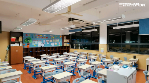为了打造健康舒适的学习环境,近日杭州市金都天长小学与上城区卫生健康局、上城区教育发展服务中心,特意邀请三雄极光为校内教室照明进行升级改造。改造工程着重从教室课桌面照度、课桌面与灯具高度、课桌面照度均匀度、黑板面照度、黑板面照度均匀度、防眩光、色温、显色指数等进行改进,让教室完全符合《中小学校教室采光和照明卫生标准》(GB 7793-2010)。