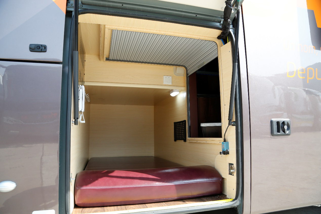 高端旅游车,自然不是说说而已。优秀的NVH静音效果,全车配有USB接口,整车WIFI全覆盖,同时配备有冰箱,乘客座椅采用运用人体工程学设计的零压座椅,软硬适中,将给乘客更好的旅途体验,让长途旅行也充满惬意。值得一提的是,这30台领航者均配有司机睡舱,带空调、暖风机和对讲机,在进行长途驾驶时,轮换司机将可以保证充足的睡眠,避免疲劳驾驶。而宽敞的行李舱空间,也配有遥控一体式行李舱门。