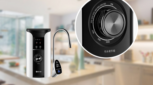 碧水源纳滤净水机D601运行压力低、通量大,与传统净水机相比更节水省电;创新采用节水调节阀,具有“100—1000”十档可调,可根据水质情况灵活制定个性化饮水方案,进一步提高产水率,节约水资源,节省用水成本。该产品节水优势明显,获得了由北京中轻联认证中心颁发的A+节水认证证书,产水率高达70%以上,在节水型纳滤净水机中被评定为1级节水产品。
