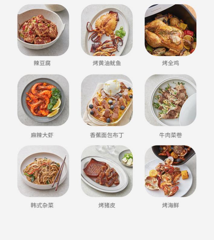 乐扣乐扣蒸嗨锅丰富的烹饪功能决定了它在菜式上丰富多样的可能性。纯蒸、纯烤和蒸烤结合的三大模式,大大扩张了它能够驾驭的菜品。从家常小菜到硬菜大菜,从传统美食到异国料理,只要灵活地采用适合的模式,就能够轻松做出同款网红美食,让厨房小白也能蜕变成美食博主。全方位满足你对美食的需求。