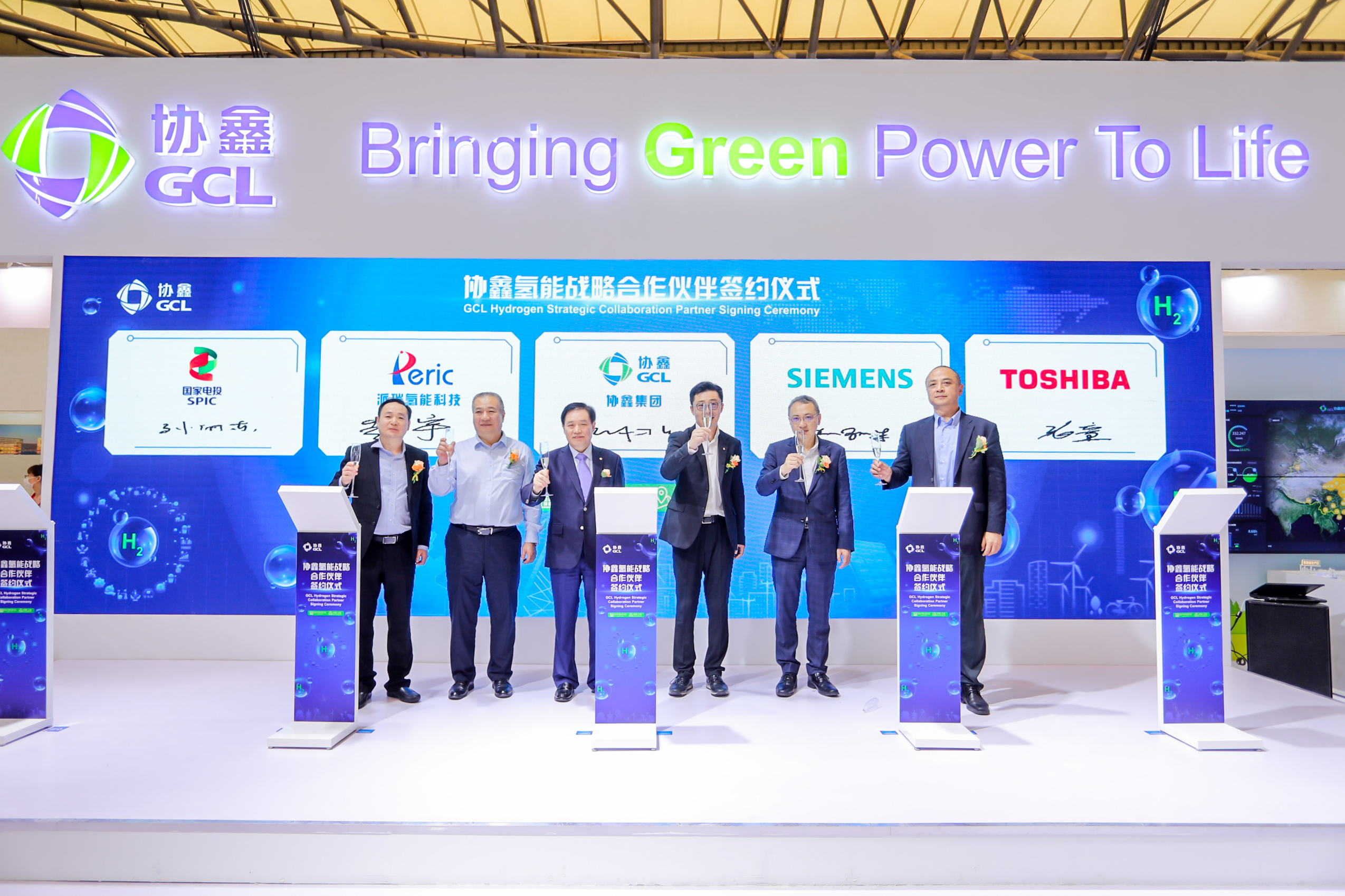 6月3日,正在上海举行的2021SNEC展会上,协鑫集团分别与西门子(中国)有限公司、东芝(中国)有限公司、中船派瑞氢能科技有限公司、国家电投集团北京绿氢科技发展有限公司代表签署了战略合作协议。这标志着协鑫集团继今年3月进入移动能源领域后再度进军氢能产业。