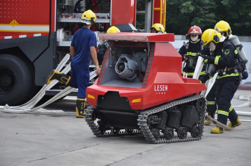力升高科首创的1000℃耐高温消防机器人,拥有多项耐高温防护专利技术。它能够在不需要外部辅助降温的情况下进入1000℃的高温环境中连续工作30分钟以上,适用于各种复杂环境灭火救援,尤其是在厂房、仓库甚至是工化厂区等极危的火灾事故现场,消防员不用到达,就可以通过无线遥控器,灵活控制机器人深入火场作业,一方面可以直击火场内部进行“零距离”侦察,给现场救援指挥决策提供第一手数据,另一方面可以近距离精准打击火源,提高灭火效率,同时也可以在消防员进入火场之前进行降温,隔离火灾核心区域,对提高消防救援的安全性、减少人员伤亡具有重要意义。