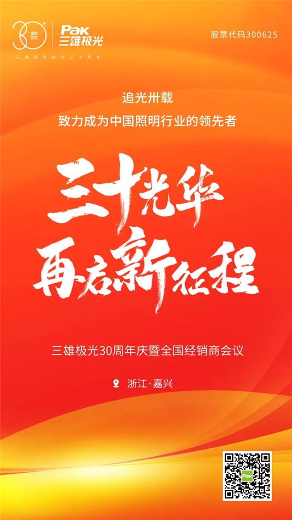 三十年来,风雨兼程、荣耀不止。当初“照明界的初生牛犊”胜利完成第一个30年的企业历史使命,已强势成长蜕变为“中国照明行业领先者”。三十年来,每一位三雄极光人团结一致、勠力同心,携手一起探索光、理解光、追逐光、创造光......