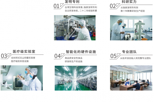 现可同步支撑10条生产流水线的运行,有效利用厂房设备简化生产流程,缩短生产周期、降低生产成本,大力满足广大客户与当今市场对健康食品的迫切需求,10万级净化车间;CIP纯净水处理系统;通过ISO 22000食品安全管理体系认证;通过清真认证;通过美国FDA认证;出口食品生产企业备案编号:3502/110043。集台湾广园生化科技有限公司数十年之大成,结合台湾美是康生化科技有限公司共同开发设计配方,携手功能性食品、生命科学领域的尖端学府科研机构——台湾嘉义食品研究所。