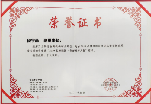 从创业到创新,虽然只有短短几年时间,但经过段宇晶和团队的拼搏奋斗,不仅实现了产品从无到有的突破,也实现了自我的提升与超越,而她几年来的付出与努力也得到了行业与社会的广泛认可。2019年,她带领的团队荣获“创客中国、创客北京”丰台区创新大赛二等奖、德申国际全球会长论坛路演大赛金奖、《中国好项目》第82期冠军。应用SYCORE-TEX材料制作的JEEP冲锋衣也成功入选2019年度十大类中国纺织创新产品。在“2019中国经济发展高峰论坛暨中国经济影响力人物颁奖盛典”上,段宇晶荣获“2019中国经济十大商业木兰”荣誉称号,公司也被授予2019中国经济新锐企业,并获得2019中国科技创新先进单位、2019品牌强国(行业)十大创新力企业、青岛市第五届“市长杯”中小企业创新大赛李沧赛区优胜奖等荣誉。2020年,段宇晶主持完成的“轻薄保暖自清洁面料的开发与产业化”项目获得全国商业科技进步二等奖,与合作企业联合申报的“老年冬季超轻保暖调温裤”荣获“2020年度十大类纺织创新产品”称号,同时公司也被授予了中关村高新技术企业的荣誉称号。