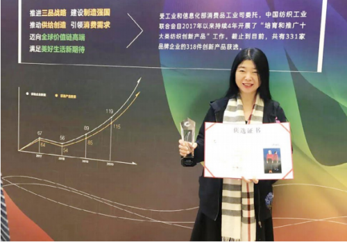 世上从没有轻易的成功,想要到达梦想的彼岸,就必须接受风雨的洗礼。一款新产品的问世需要经过从实验室阶段到小试、中试阶段,然后再到量产阶段这样一个漫长的过程。在产品的研发过程中,段宇晶和她的团队也曾遇到过各种各样的难题,但她却从不轻言放弃,反而更努力地去寻找解决问题的办法。SYCORE-TEX新材料的检测工作缺乏相对应的测试方法,段宇晶就和中纺联的检测中心展开深度合作,携手打造新的企业标准,这不仅仅代表了她对新产品有着足够的信心,也彰显了她要在创新这条道路上大展拳脚的决心。她说,“美国创造了被誉为世纪之布的GORE-TEX吊牌,我们也要创造出自己的SYCORE-TEX功能性吊牌,让广大消费者看到我们的吊牌就能知道这是一种既轻盈又防风保暖的材料。”现在,公司已与国家生态及功能纺织品服装质量监督检验中心、中国纺织工业联合会检测中心及中纺协(北京)检验技术服务有限公司合作,已经制定出SYCORE-TEX超轻保暖系列产品的企业标准并申报了“防风保暖+轻盈性”功能吊牌。这也是中纺联首次授予企业这样的功能性吊牌。