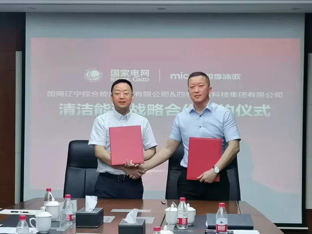 9月15日,四季沐歌科技集团与国网辽宁综合能源服务有限公司战略合作签约仪式在辽宁沈阳举行。双方在清洁能源应用领域展开全面合作,通过新产品、新技术、新模式的应用,大幅提升国网项目的经济性、环保性和安全性,创造更大的经济效益和生态环保效应,打造共建、共治、共赢的能源服务生态圈。