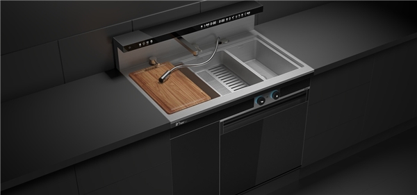 除其包含的洗碗功能、消毒功能、烘干功能、残渣处理功能、软水功能,果蔬/海鲜清洗功能、水槽功能、沥水篮功能、切菜台功等,只一个水槽的空间就省去了洗碗机、切菜台、果蔬清洗机、沥水篮等的单独位置,让厨房拥有更多可利用空间。据了解,此款产品同时也申报了今年的德国IF工业设计大奖。