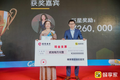 而在今年3月1日-3日,蜂享家2020年掌柜年度盛典在三亚举行,其中超级巨星奖最高达26万!这实在是让人可喜可贺的成绩!