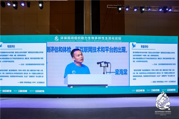 专题分享环节由中华环保联合会国际部副部长倪垚主持,邀请了从事生态保护、可持续能源、污染防治和综合性议题四大领域的环保非政府组织,分享了他们各自推动生物多样性保护的前沿观点。