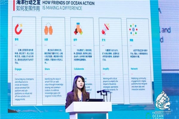 世界经济论坛海洋行动之友负责人谢茜和北京守望者基金会秘书长刘盛,分别从海洋和河流污染防治的视角,为来宾讲述了他们开展的全球塑料伙伴关系和“趣河边”公众参与河流保护项目的模式和工作方法。