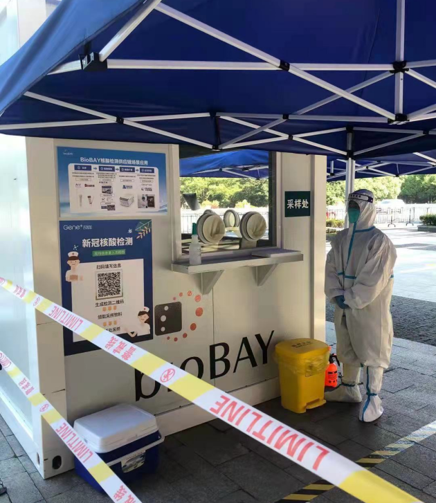 在苏州工业园区,由BioBAY携手吉因加搭建的移动采样舱吸引了当地市民和媒体的关注。这个看起来像书报亭一样的采样舱,通过窗口“伸出”两只橡皮手套,内部医护人员可在不与外界接触的情况下,将手从手套中伸出采集咽拭子……“舱内设有独立的空调系统、紫外线消毒设备等,可在减轻采样医护人员工作负担的基础上提升采样效率。”吉因加苏州医学检验实验室的相关负责人如此解释。