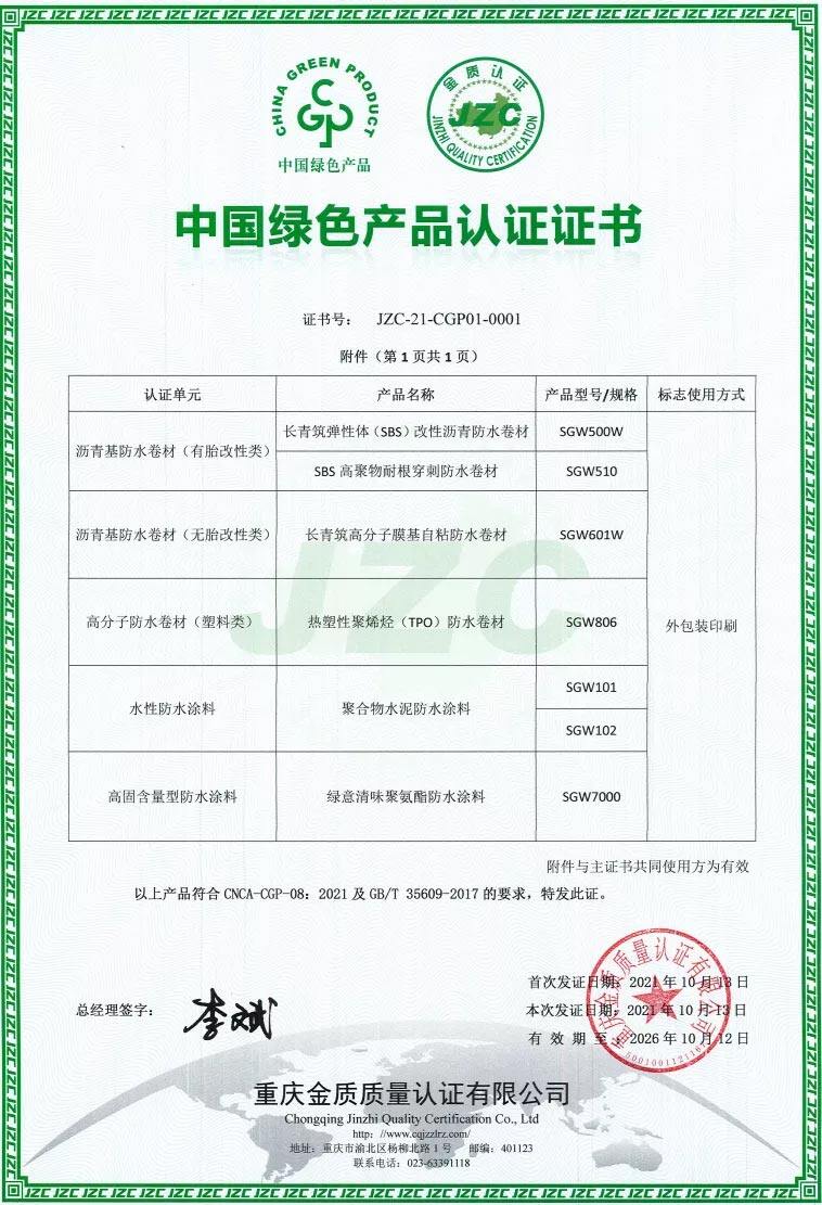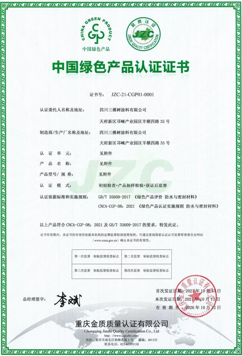 近日,三棵树防水旗下七类防水产品荣获中国绿色产品认证证书。该认证是为贯彻落实《生态文明体制改革总方案》,建立统一的绿色产品标准、认证、标识体系,根据《国务院办公厅关于建立统一的绿色产品标准、认证、标识体系的意见》国办发﹝2016﹞86号,推进和实施绿色产品认证。