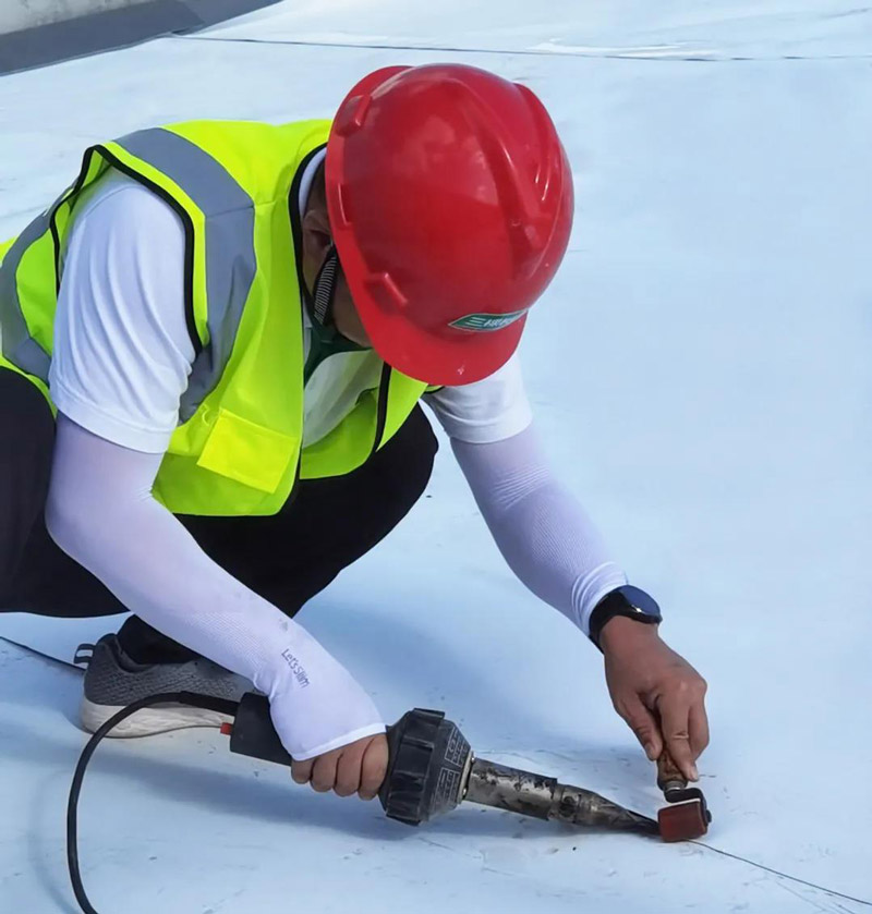 同时,施工过程采用无明火的热风焊接工艺,不仅方便安全,而且有效降低废气排放,减少施工过程中对人们健康与周边环境的负面影响。铺设完成后可形成安全可靠密封防水层,让场馆屋面无惧风吹日晒,令校内师生在馆内安心畅游。