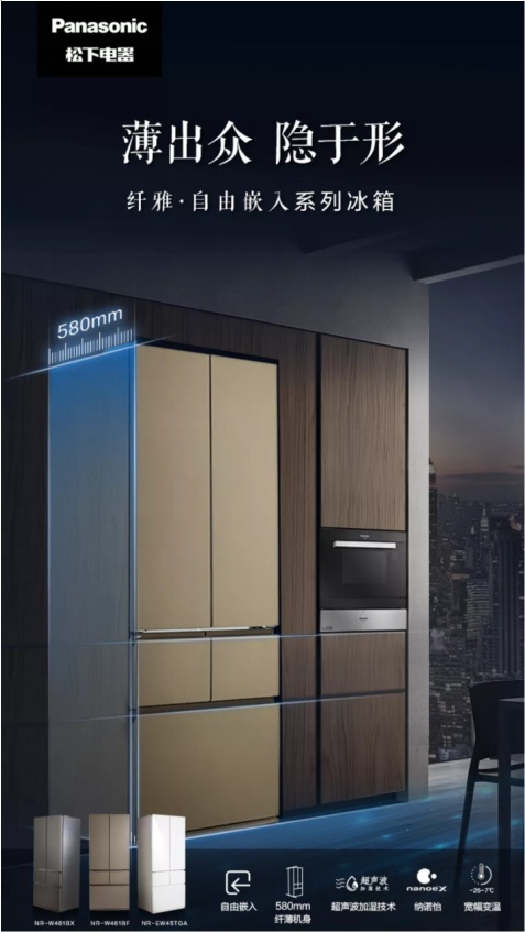 冰箱的研发不仅要关注冰箱内部食材保鲜和储存,同时要思考人、建筑和空间的关系,将外观设计延伸到厨居设计的深度考量。简约时尚的外观设计,纤薄有道的机身线条,便捷高端的内在功能,通过松下冰箱研发团队执着理想家的设计理念,成为折服现场设计师的产品。