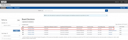 从美国知识产权局USPTO的专利审判于上诉委员会PTAB官网中可以看到,除了Carku卡儿酷对NOCO的无效案件IPR2020-00944之外,曾有4次对NOCO这件015专利的无效案件,但这几件无效案件均以PTAB未受理而告终,也侧面证明了NOCO专利稳定性相对较好。