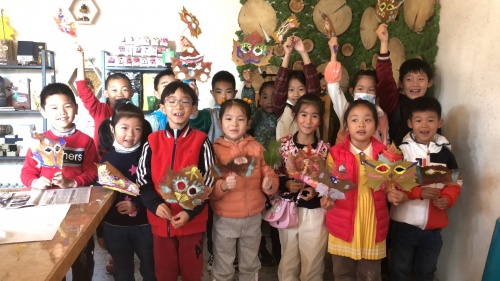 11月13日上午,在青岛市互联网+全民义务植树第一绿色驿站里,市实验小学一年级四班的同学们走进“落叶魔法师学院”,在青岛知名文创师-刘萍老师的带领下进行了一场落叶上的“假面舞会”。他们化腐朽为神奇,用落叶画的形式温暖地拥抱初冬。