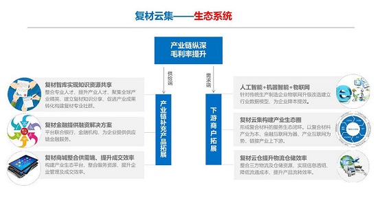 贯彻供给侧结构性改革, 抓紧市场需求,减少传统企业的短板。复材云集于2018年成立,它敏锐地感知到消费者使用互联网购物时商品增多带来极多的选择的同时,也让消费者感到迷茫。每当消费者想要购买物品之时,总会很迷茫,就像是站在无数个交叉路口正中央。特别是在选购不熟悉的物品时更是感到很复杂。所以,面对这样的现象,复材云集应运而生。复材云集是一个整合复合材料的互联网平台,平台目前涵盖了数千多家复合材料上下游企业。消费者可以通过这个平台了可以了解到市面上最全最优的复合材料。消费者可以不用花费大量的时间和精力就可以获得详细的信息,也能有专业的人员推荐。同时,在帮助消费者的同时,也能深刻直接地了解到消费者对于复合材料的需求,推动企业的生产转变,生产出贴合适合市场需求的优良产品。