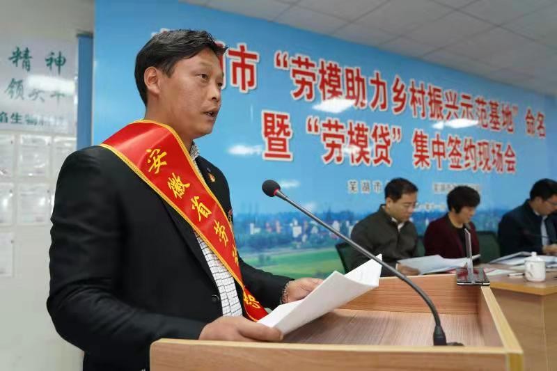 沈显华作为劳模代表发言,详细介绍了,秸秆综合利用新技术成果推广应用,通过技术助力乡村振兴等情况进行汇报。