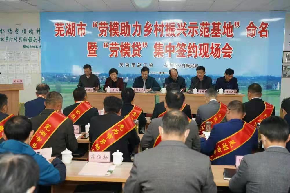 11月9日下午,由芜湖市总工会,芜湖市乡村振兴局举办关于“芜湖市劳模助力乡村振兴示范基地”集中授牌现场会,在芜湖聚焰公司召开。会上宣布了芜湖市劳模助力乡村振兴示范基地名单。