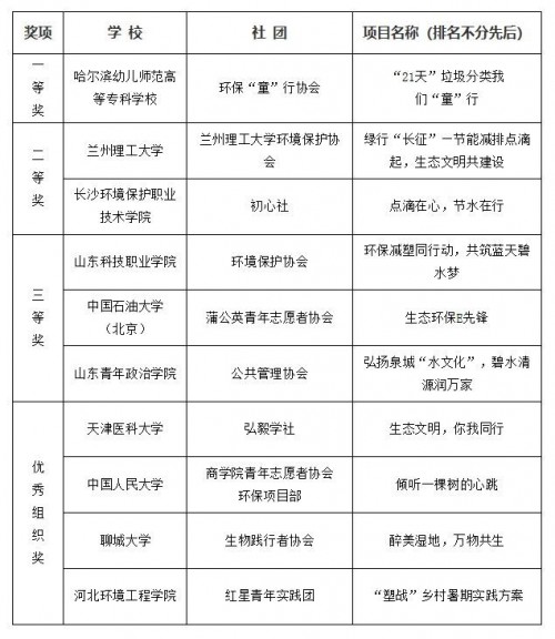 2021“清洁美丽中国行”活动获奖高校社团项目名单