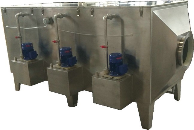 环保除臭产品—MS-3型膜式生化除臭机:公司专利产品,箱体为全不锈钢耐腐蚀材质,内部采用特制耐酸碱、耐腐蚀进口膜式洗涤吸收填料,吸收、分解、去除废气中的氨及硫化物;循环洗涤水可根据需要添加针对性的酸类、碱类除臭介质,或添加生化、植物除臭液等,可用作酸类、碱类、有机类及各种恶臭气体的去除。