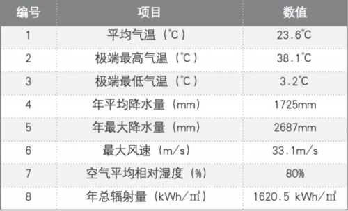 项目地位于海南省东方市(东经108.67689,北纬19.097112),地处于热带海洋性季风气候区, 其特点是全年高温潮湿高辐照。