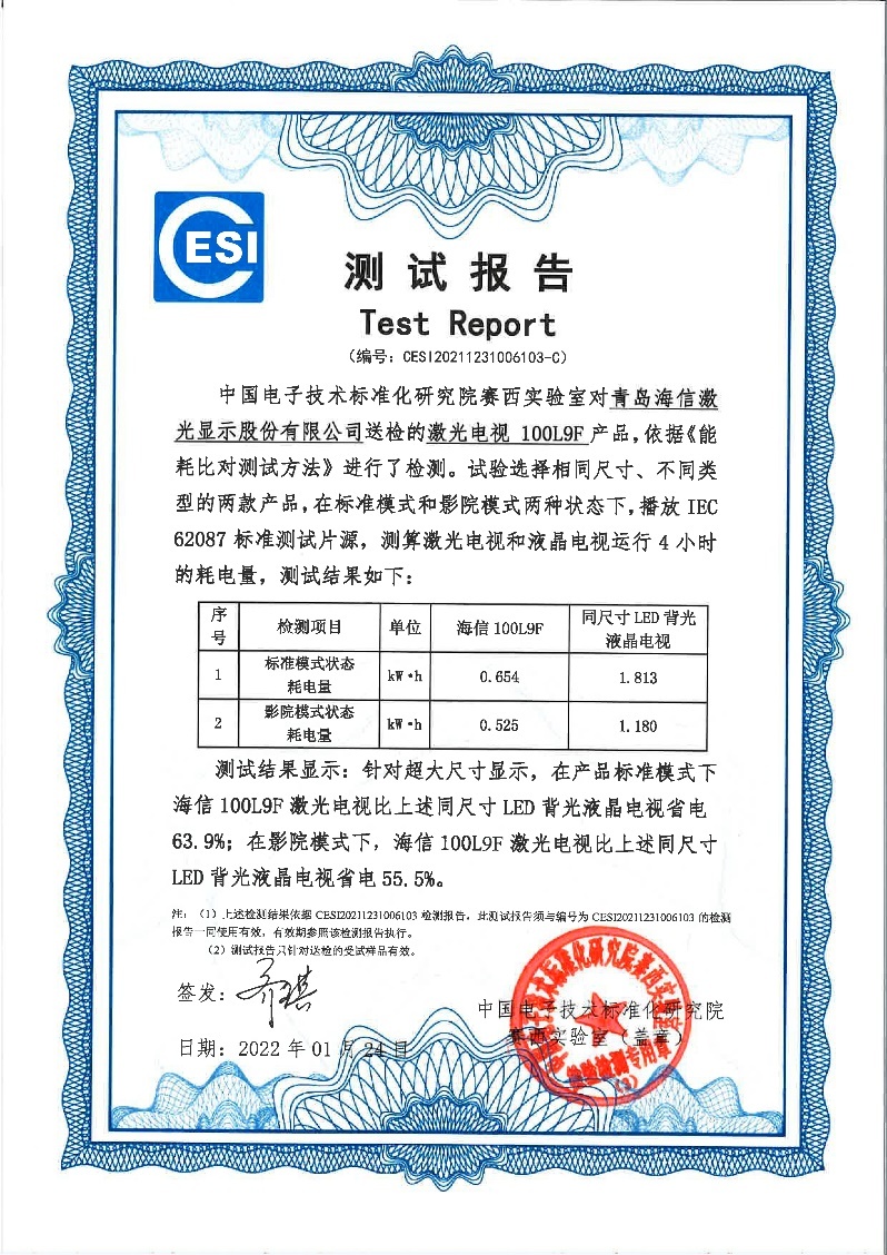 当绿色低碳、节能环保、超高清、大屏幕已经成为彩电产业升级的主流方向,激光电视显然已经成为这一趋势的引领者。中国电子技术标准化研究院选择当前市场上主流的激光电视和液晶电视进行能耗对比检测,为消费者选择大屏电视以及推动产业升级提供了科学的依据。