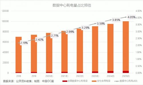 据发改委数据,目前国内数据中心的用电量大概占全社会总量的2%。以此来估算的话,数据中心的能耗差不多相当于两个半三峡水电站的发电量。