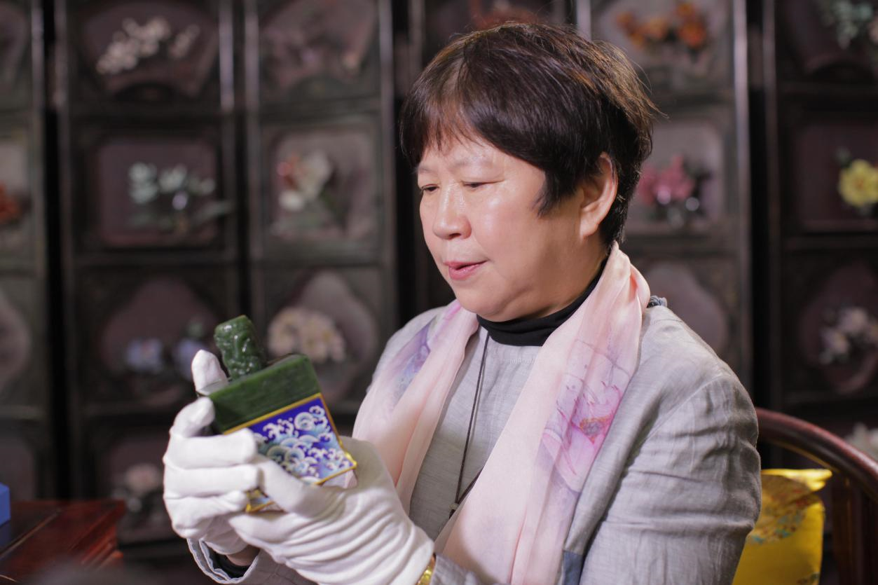 “中华航母玺”整体威严大气,上部玉雕象征中国航母蛟龙出海,下部景泰蓝象征广袤蓝色海疆,充分体现出了景泰蓝新时期的新面貌。”景泰蓝所表现出的海水纹,画面恢宏,海水的翻滚与层叠,象征着中国海军的荣誉与辉煌,“珐琅张-张氏景泰蓝”嫡系传承人张旭评价道。